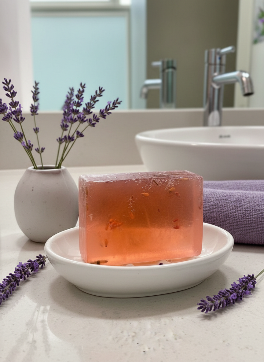 Laat de drukte van de dag wegsmelten met de zachte, ontspannende geur van lavendel. Geschikt voor gezicht en lichaam. Deze transparante glycerine zeep voelt licht aan op de huid en creëert een rustgevende spa-sfeer, alsof je favoriete chill-playlist zachtjes meeloopt op de achtergrond.